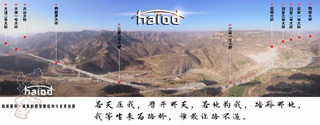 太行山高速公路邯鄲段海波重科承接內(nèi)容為全線11座鋼-混組合梁大橋中工字鋼梁的制造及安裝,全線鋼結(jié)構(gòu)工程量約31140噸。該項目地處太行山境內(nèi),地形、道路條件都極其復(fù)雜,施工難度巨大,工期極其緊張,工字鋼梁現(xiàn)場安裝工序繁瑣,現(xiàn)場建設(shè)拼梁場,桿件運輸至梁場后拼裝成榀,鋼梁總體采用架橋機架設(shè),這些因素均為完成本項目的工期目標帶來了極大考驗。在面對諸多困難的情況下,海波重科總經(jīng)理劉乾俊的舉動極大的鼓舞了太行項目部,這也使得太行山高速公路邯鄲段全線11座工字型鋼-混組合梁大橋的順利貫通。