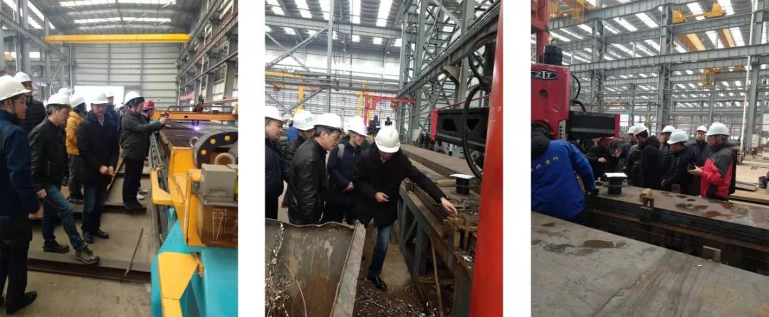 湖北省交通廳建設(shè)處副處長周炎新、湖北省交通廳公路局處長呂厚全、副處長謝華鸞、湖北省院副總監(jiān)張貴士、長江路橋總經(jīng)理王懷才、書記馮太坤、總工楊建波、江北東項目業(yè)主董事長左光恒、副經(jīng)理黃遵義、中交二公院二分院書記孫貴清、工研院副院長夏飛、橋梁院副院長、總工朱玉、四航局一公司副總工程師劉永峰、黃國忠、工研究結(jié)構(gòu)所總工李平杰、北京工業(yè)大學(xué)、同濟(jì)大學(xué)各位老師及領(lǐng)導(dǎo)蒞臨海波重科漢南分公司鋼結(jié)構(gòu)加工廠做現(xiàn)場考察工作。